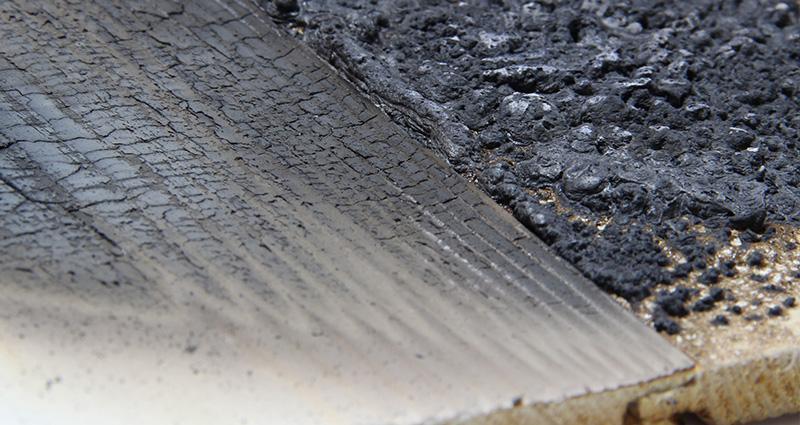 - visuele inspectie van brandwerende verf op staal of hout: scheuren, roest, afschilfering zijn alarmsignalen die de beschermende werking in vraag stellen;