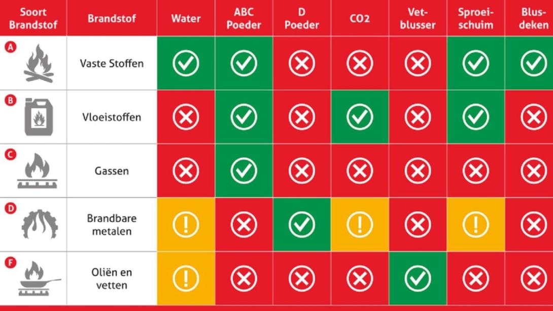- voorzie altijd passende blusmiddelen in de nabijheid (schuimblusser voor vloeistoffen, CO₂ voor elektrische installaties), en instrueer personeel minimaal over gebruik;