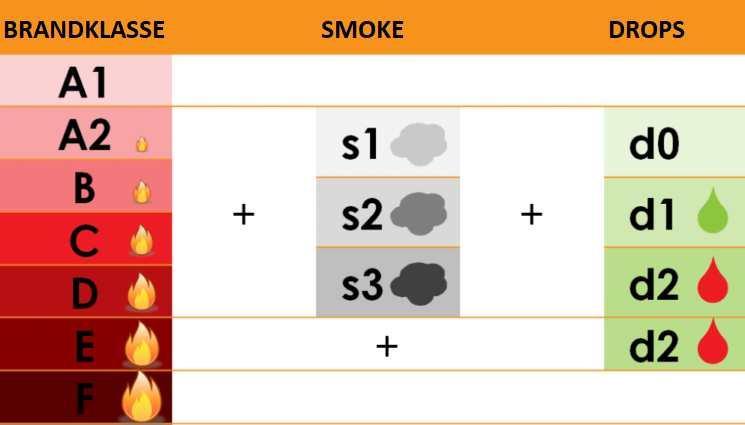 In traphallen, gangen en vluchtwegen speelt niet alleen de brandreactie, maar ook rookontwikkeling een hoofdrol. Materialen met s1 (weinig rook) hebben de voorkeur; d0 vermijdt brandende druppels die vluchtroutes onbruikbaar maken.
