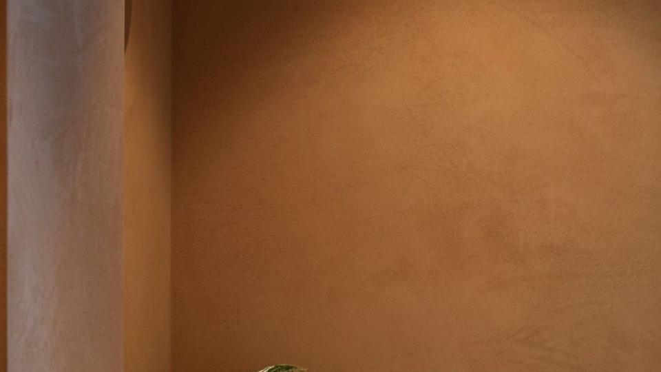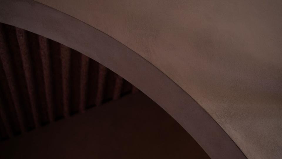 Een ruimte van vijf meter hoog met ingenieus bogenspel in eenzelfde kleur uitwerken en voorzien van verschillende technieken, het is niet iedereen gegeven. “Een techniek plaatsen op moeilijk bereikbare plekken is niet evident”, vult schilder Kenneth van General Painting aan. “Op deze werf werkten we met Limestone Concrete, een duurzame techniek die speelt met laagdiktes en structuur, en met Claystuc Grit, een ruwe structuur die bijzonder hard en krasvast is. De kleur die Nick voor ogen had, is op maat aangemaakt voor alle verven.”